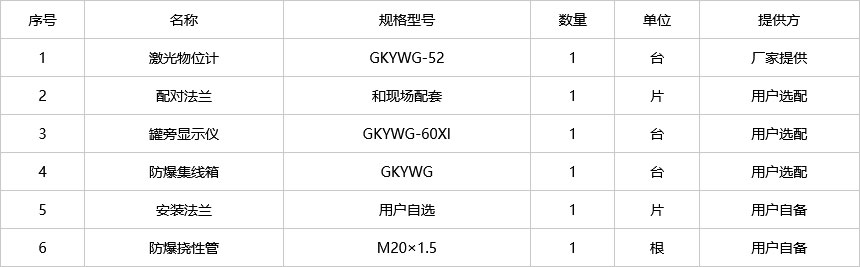 GKYWG-52激光物位計也叫激光料位計,是由河北光科測控設備有限公司自行研發的一種大量程、高準確度的防爆型物位測量產品。具有物位測量、平均溫度測量、開關量報警輸出、可連接罐旁顯示儀等功能。產品結構合理,準確度高、維護率低。該產品已經廣泛應用于石油、化工、電力、冶金、食品、制藥、造紙、水處理等行業的物位測量與液位過程控制中。
